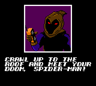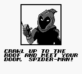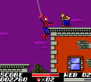 | The nostalgia bird has shaken her tail feathers and I am helpless to resist her spell, as I have no other excuse for coloring a cruddy game like The Amazing Spider-Man. I hated it then, I hate it now, and I will hate it forever, and yet I was still curious to see what I could do to it with the magic of MSPaint. But you know what? It just looks like an ugly Game Boy Color game now that it's been colorized (Although I do like how Spider-Man's sprite turned out). |