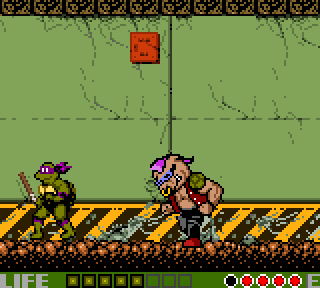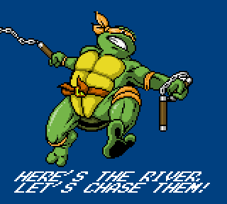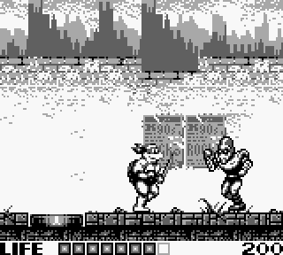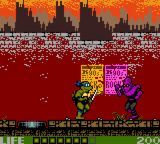 | I loved this game when I was a kid because it was so easy. Can't say that opinion still stands now, but I do really like how it's colorization turned out... The shot of Leonardo in the city is probably my favorite product of this section so far. Even when the games themselves are bland and/or awful, Konami sure made some great coloring books for the ol' Game Boy. |