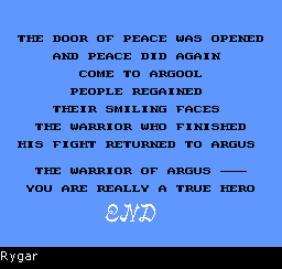While the US version of Rygar was completely unchanged as far as graphics and gameplay were concerned, many pieces of the game's soundtrack were replaced in the translation. Areas with different music in the Japanese version are as follows: